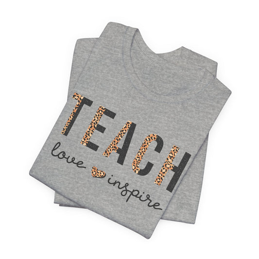 Teach, Love, Inspire Cheetah Print Unisex Short Sleeve Tee